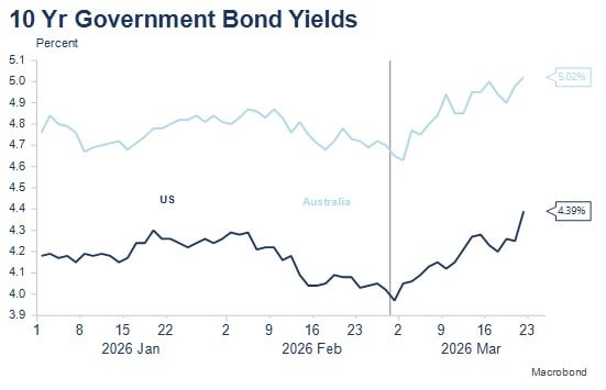 In the first instance, the market needs to trade the inflationary consequences and pressures of higher oil prices and the data centre rollout, while being alert to the tipping point where high oil prices switch from being an inflationary concern to causing recession. Under either scenario, increased pressures on consumers’ and business’ budgets and cash flows, will likely weaken equity prices and credit, until such time as there is a peaceful or military conclusion to the situation. That timing remains very unclear, though several US officials have suggested that the US is close to achieving its objectives. This remains to be seen, though it’s interesting that the US is significantly increasing the number of marines deployed to the region. Recent troop and weaponry buildups have tended to precede escalation rather than de-escalation.